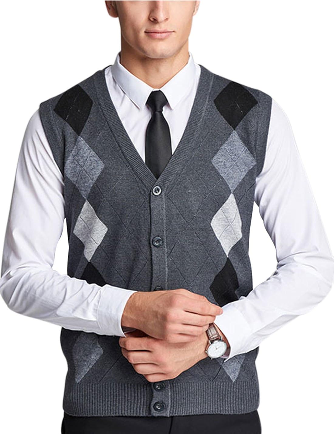 Yeokou Mens Casual Slim Sleeveless V Neck Button Front Wool Knitted Sweater Vest At Amazon Men S Clothing Store
