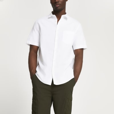 White Short Sleeve Linen Regular Fit Shirt River Island