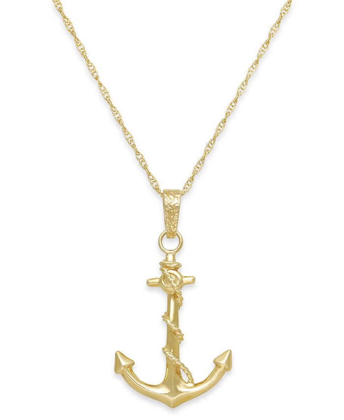Macy S Men S Anchor Pendant Necklace In 10k Gold Reviews Necklaces Jewelry Watches Macy S
