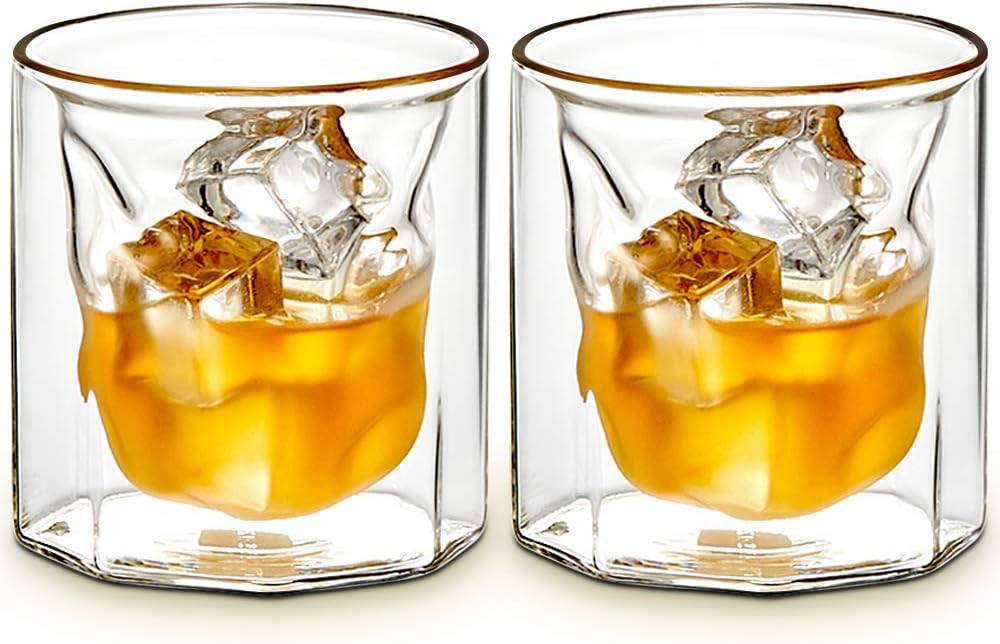 Double wall whiskey glass. These glasses have a double-wall design that helps keep the drink cold for a longer time. After the inner and outer glass walls have been blown and prepared the inner glass is inserted into the outer at which time the rims are reheated and joined. 11 Zeilen 2 Pieces Double Walled Glass Whisky Glass Cups Mugs Lion Cocktail Cup Insulated By.