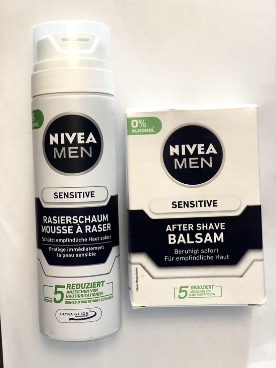 A great combination for a mild shaveNivea Men Shaving Cream Sensitiv. It can soothe and protect the skin against irritation from razor use. A cream that has been brought out for sensitive skins.