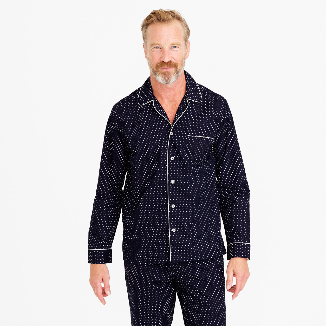 J Crew Slim Cotton Poplin Pajama Set In Navy Dots Mens Sleepwear Lounges Mens Sleepwear Mens Pajamas