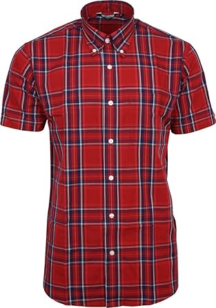 Amazon Com Relco Para Hombre Rojo Cuadros Camisa De Manga Corta Mod Piel Retro Indie 60s L Rojo Clothing