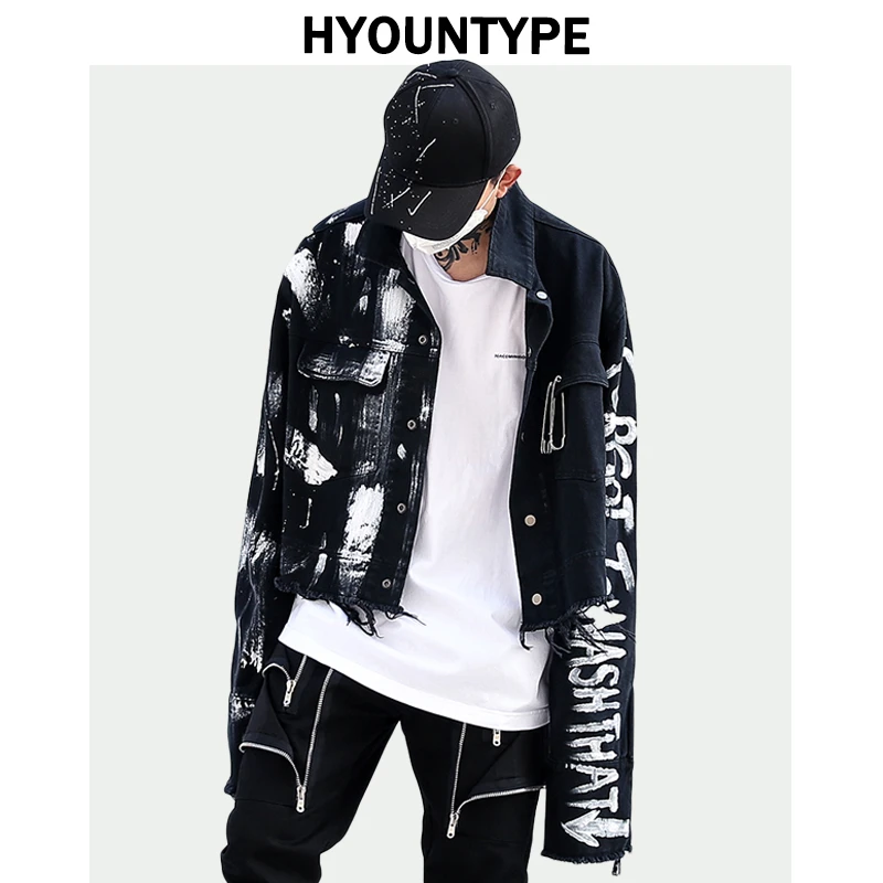 Designer Irregular Hand Painted Ripped Denim Jacket Coat Mens Hip Hop Autumn Outerwear Fashion Black Jean Streetwear Jackets Jackets Aliexpress
