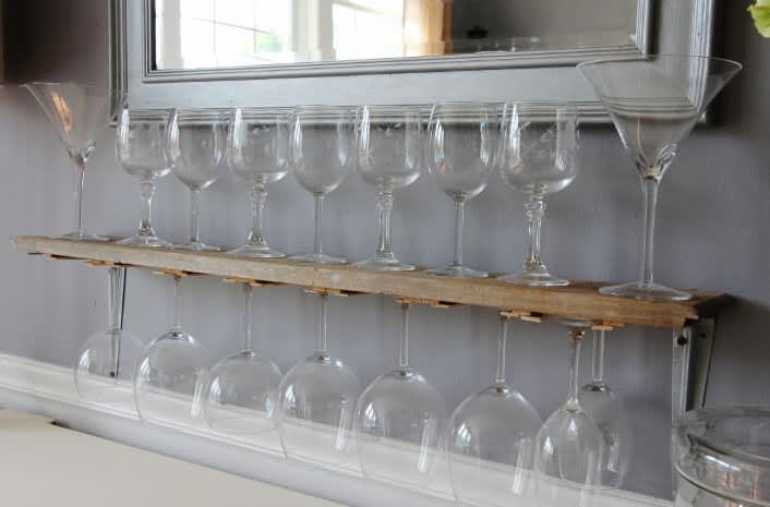 28 Ways To Customize Your Kitchen For Less Glass Shelves Kitchen Wine Glass Storage Wine Glass Holder
