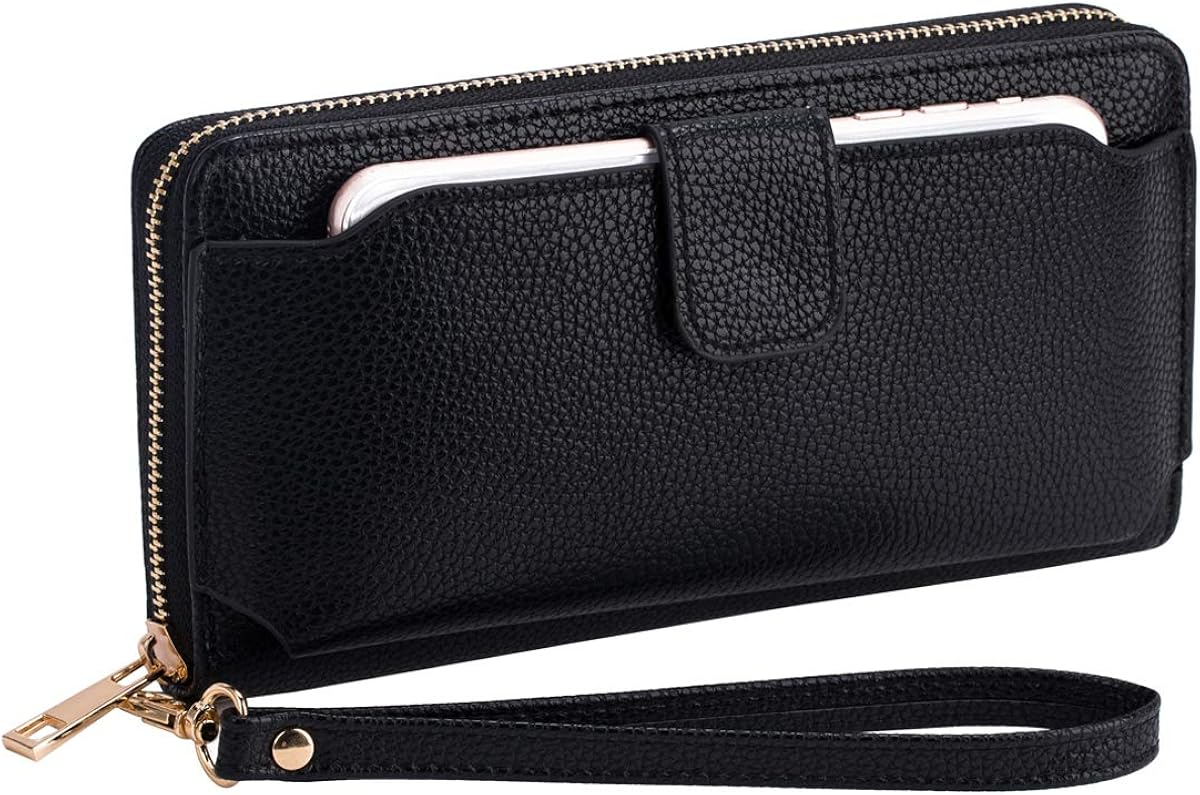 Women Wristlet Wallet With Cell Phone Holder Zip Around Handbag Black Handbags Amazon Com